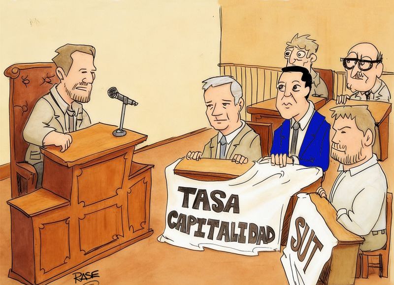 En el Concejo Deliberante, el sistema de transporte y la tasa de Capitalidad son temas de debate y preocupación. Marcelo Galland, Guillermo Bardón, Pablo Elías y Nicolás Morzone. (Dibujo: NOVA)