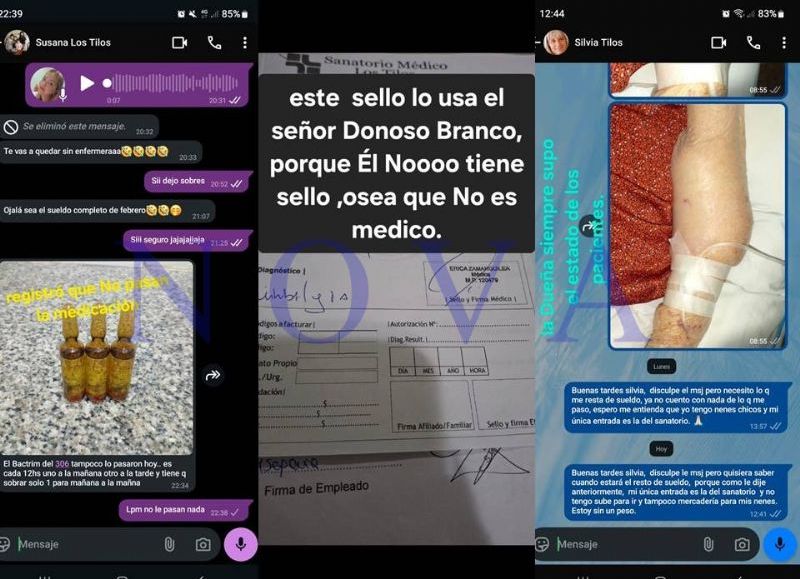 Las denunciantes agregan otra irregularidad: la clínica trabaja con médicos sin matrícula e ilustra que “el señor Donoso Branco” habría utilizado en varias ocasiones el sello de una médica de la localidad de Berisso ejerciendo en las áreas de terapia y guarida. “Recibía los pacientes y los internaba, modificaba indicaciones médicas”, ejemplificó, entre otras anomalías.