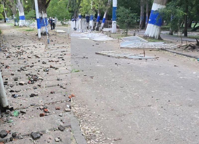 Los agresores arrojaron piedras y botellas de vidrio, provocando destrozos en la puerta 21, conocida como acceso H.