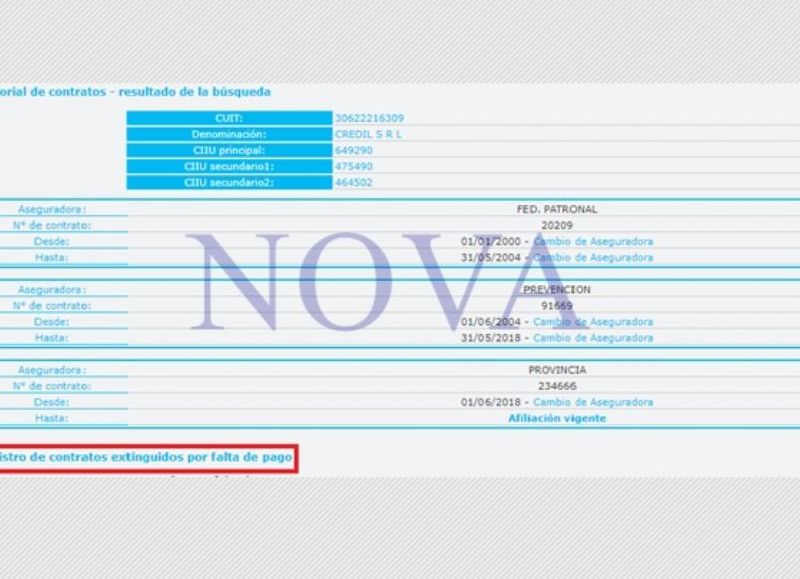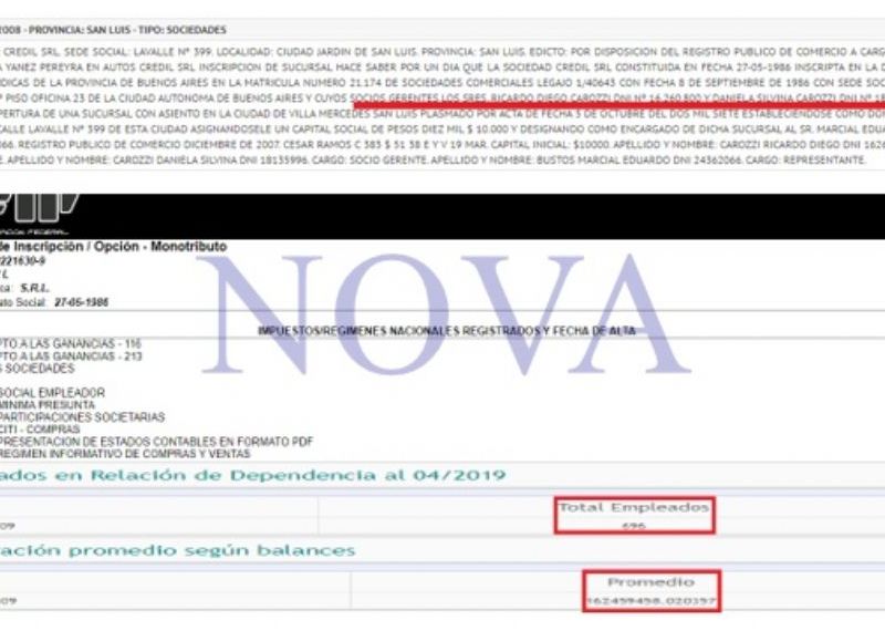 En otra firma, creada el 4 de diciembre de 2019, llamada Credil Net S.A., no la dio de alta en AFIP, porque no figura. También tiene una que se llama Elody S.A., donde está la hermana dedicada a la ejecución de ingeniería, arquitectura, patente, entre otras cosas, está dada de baja por AFIP por no presentar las declaraciones juradas y no pagar las cargas patronales.