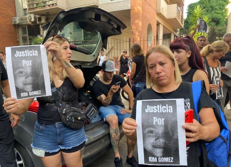 Familiares y allegados de Kim Gómez, la nena de 7 años asesinada en Altos de San Lorenzo el martes a la noche, y vecinos acompañaron a Florencia y Marcos, los padres de la víctima fatal, a los Tribunales de La Plata, para apoyar el pedido de justicia y seguridad.