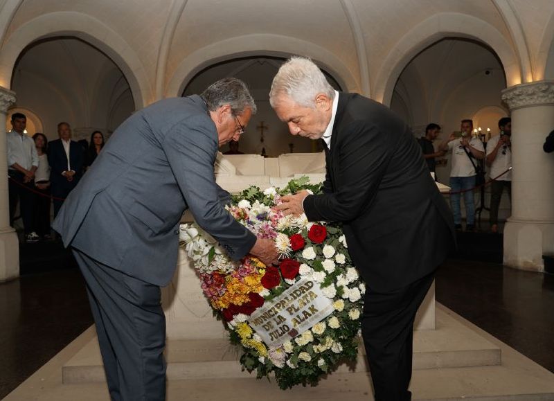 Posteriormente, el jefe comunal, las autoridades presentes y el Arzobispo entregaron una ofrenda floral en el mausoleo donde descansan los restos del exgobernador y fundador de la capital bonaerense, Dardo Rocha.